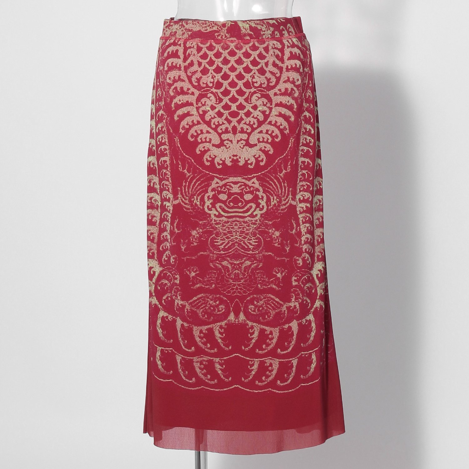 1999年の秋冬コレクションで登場した「オペラプリント」をリバイバルしたスカート。さまざまなアイテムと相性良くはきこなせる、定番のやや短めのロングスタイルを採用しました。華やかな模様でラグジュアリーなムードを盛り上げ、スタイリングに上品なアクセントをプラス。同シリーズのトップスと合わせて、ドレスライクにコーディネートするのも素敵です。