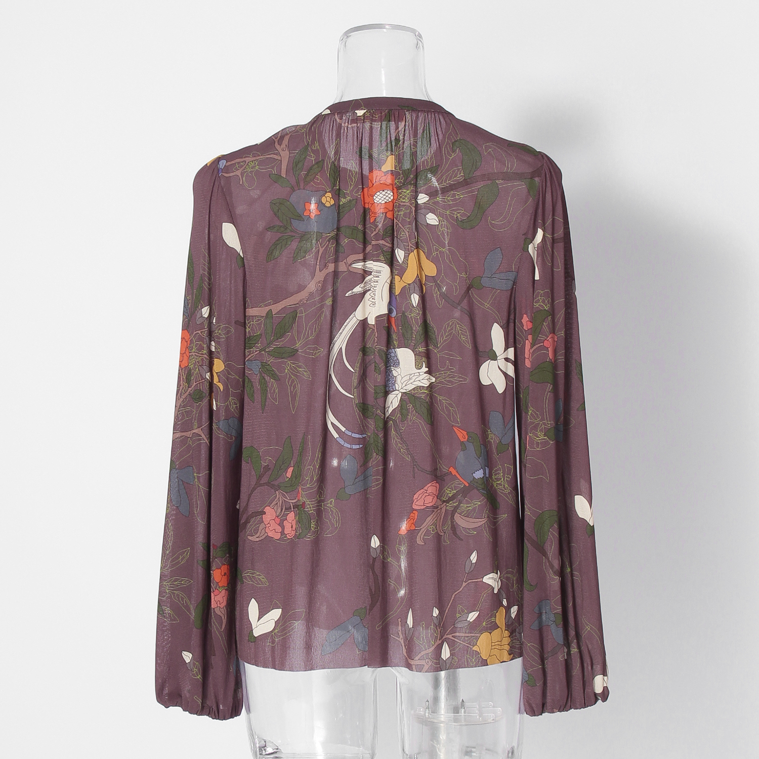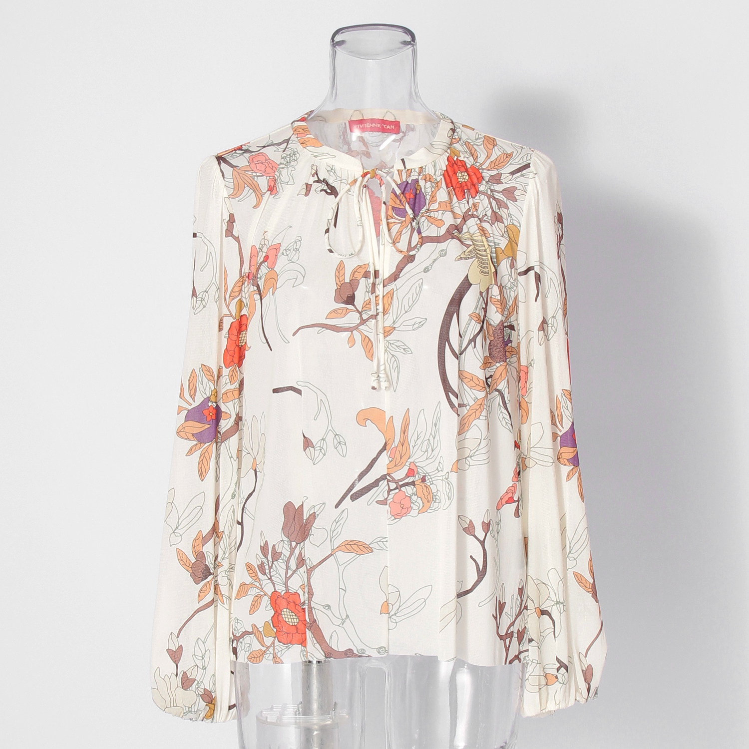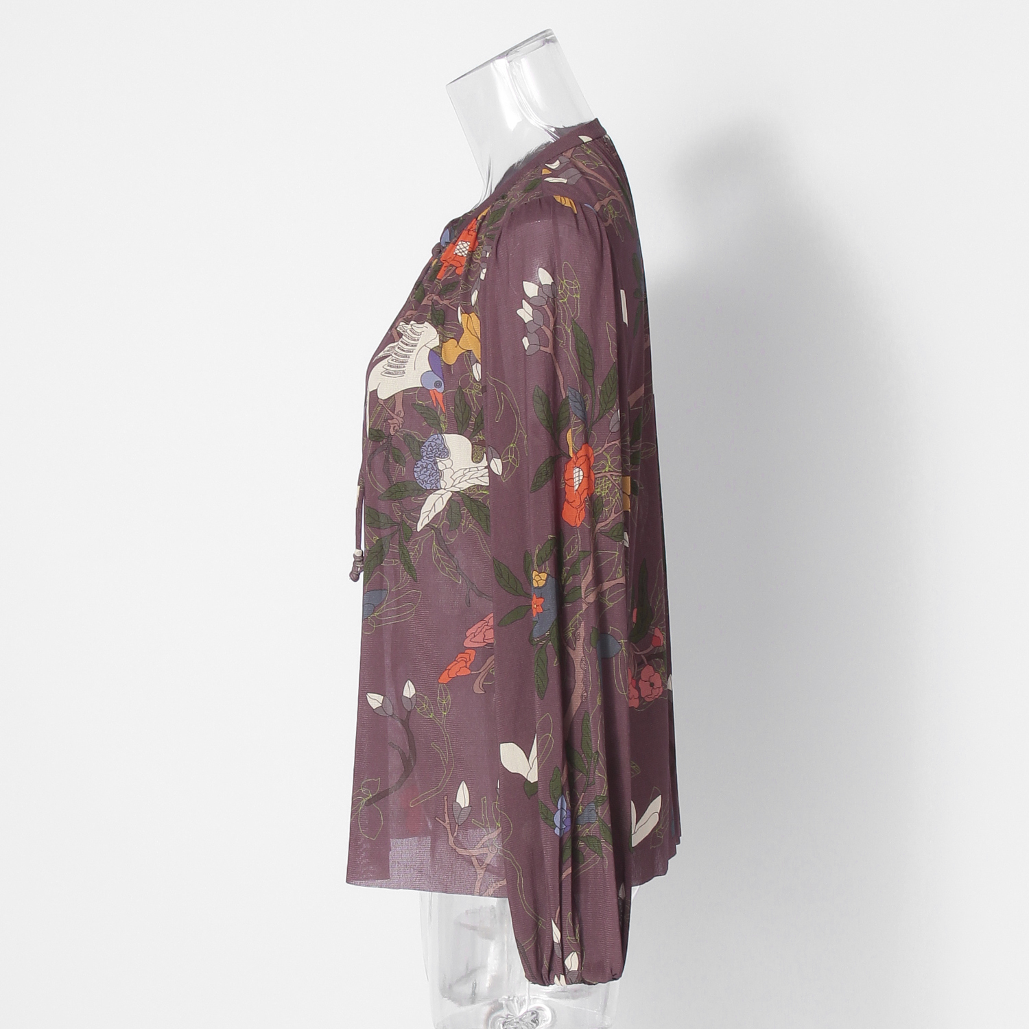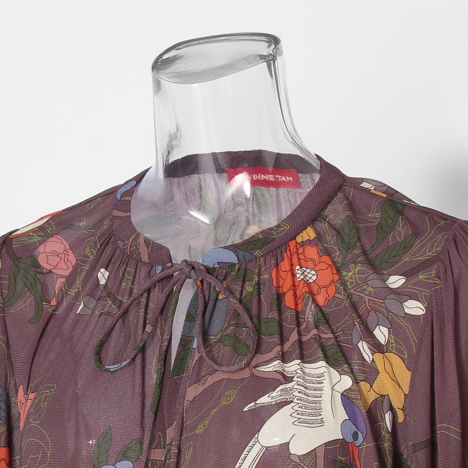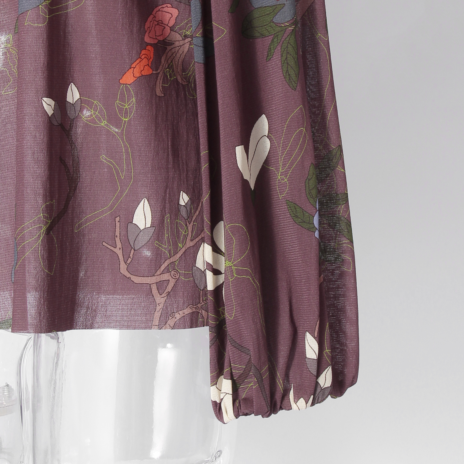 大人らしくも華やかな佇まいを叶えるブラウス。花や鳥を印象的に描いた、VIVIENNE TAMオリジナルのフラワープリントをあしらいました。ふんわりとしたパフスリーブが特徴のリラクシーなシルエットで、着心地も良好です。