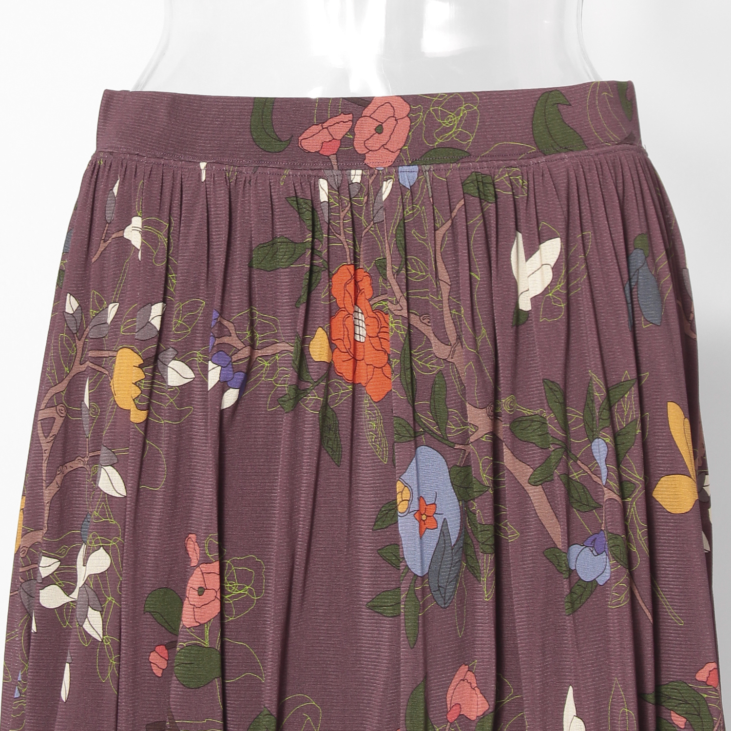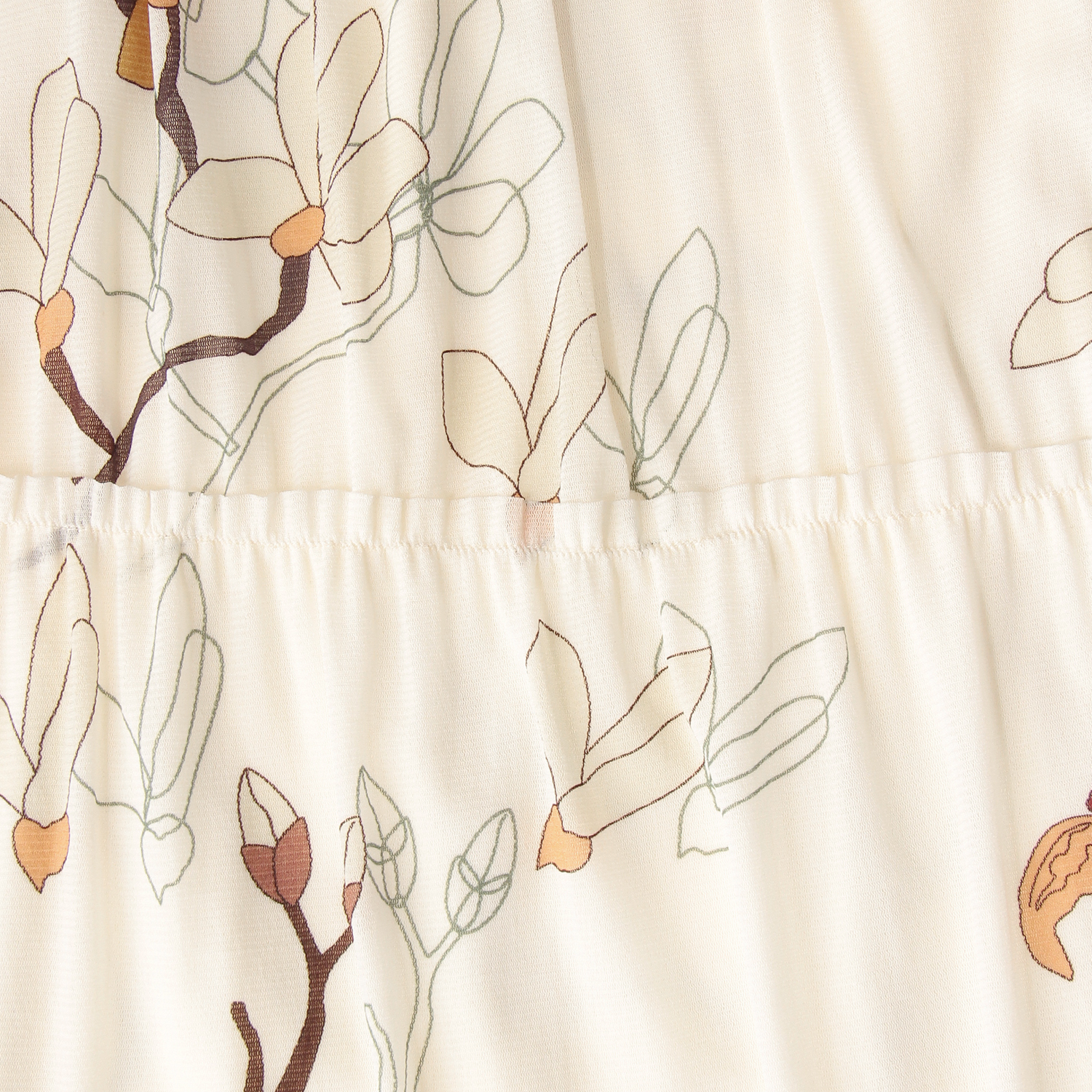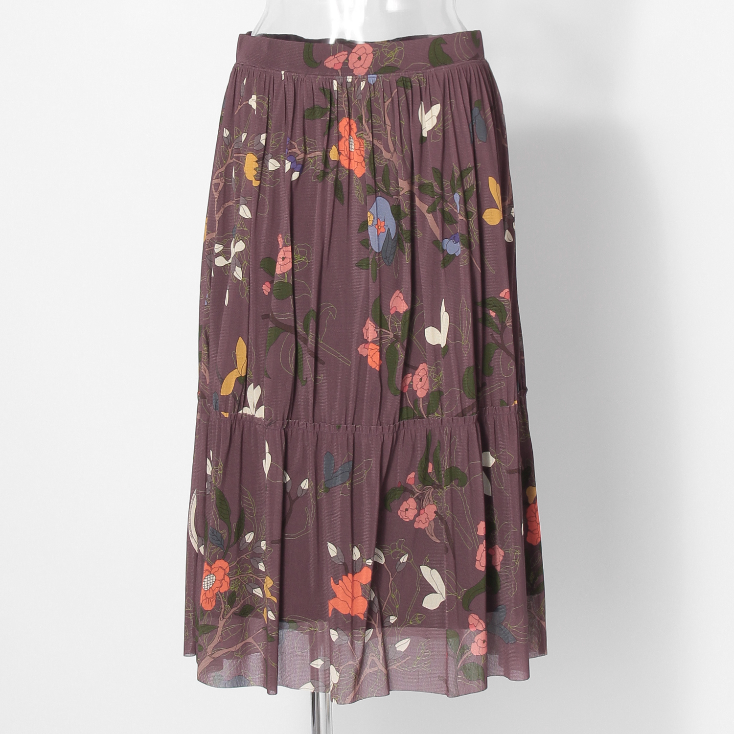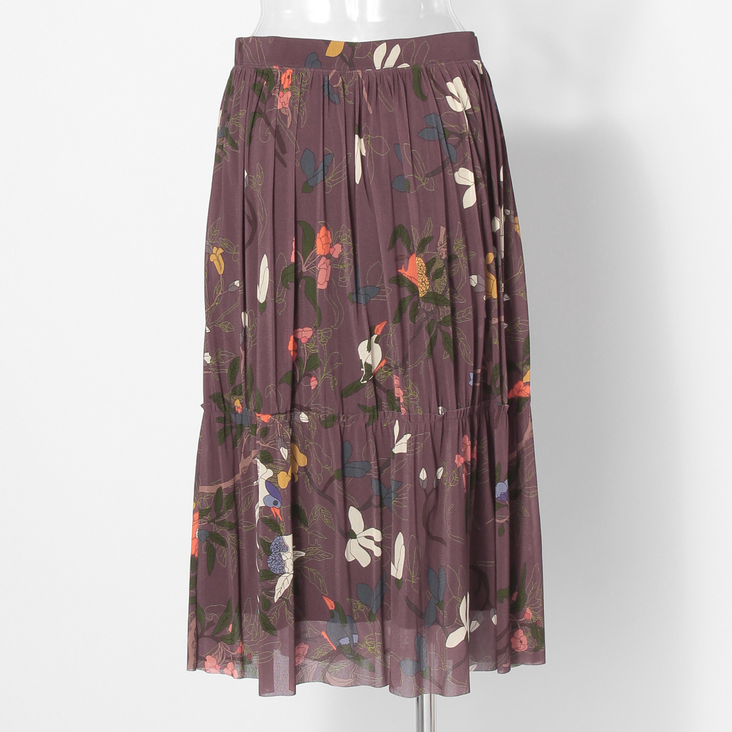 花や鳥を印象的に描いた、VIVIENNE TAMオリジナルのフラワープリントのスカート。さりげない切り替えを施し、動きのある表情をプラスしました。動くたびにシアーに揺れる裾が美しく、歩き姿をエレガントに彩る1着です。同シリーズのブラウスとセットアップで着こなせば、さらにブランドの世界観をお楽しみいただけます。