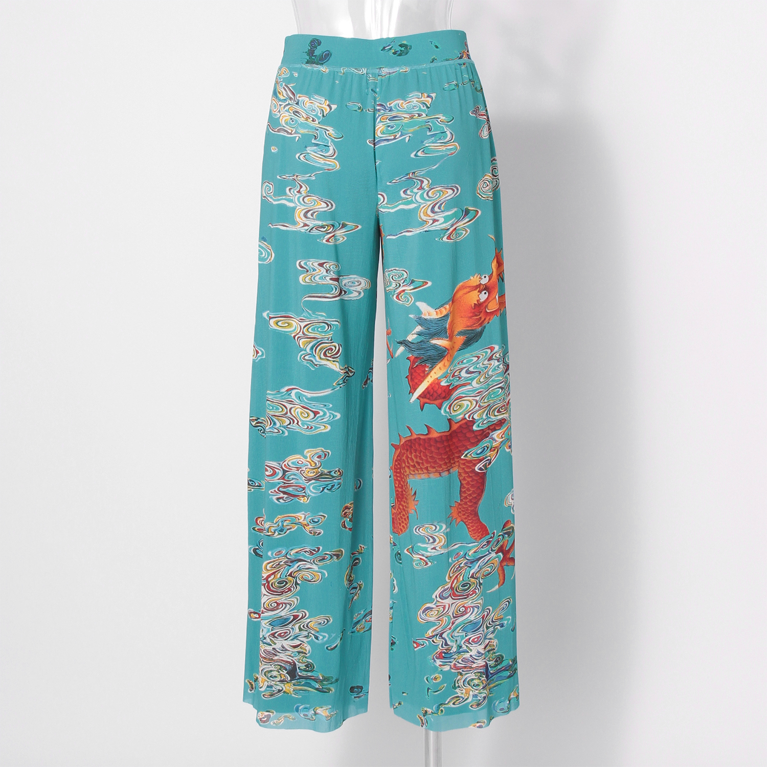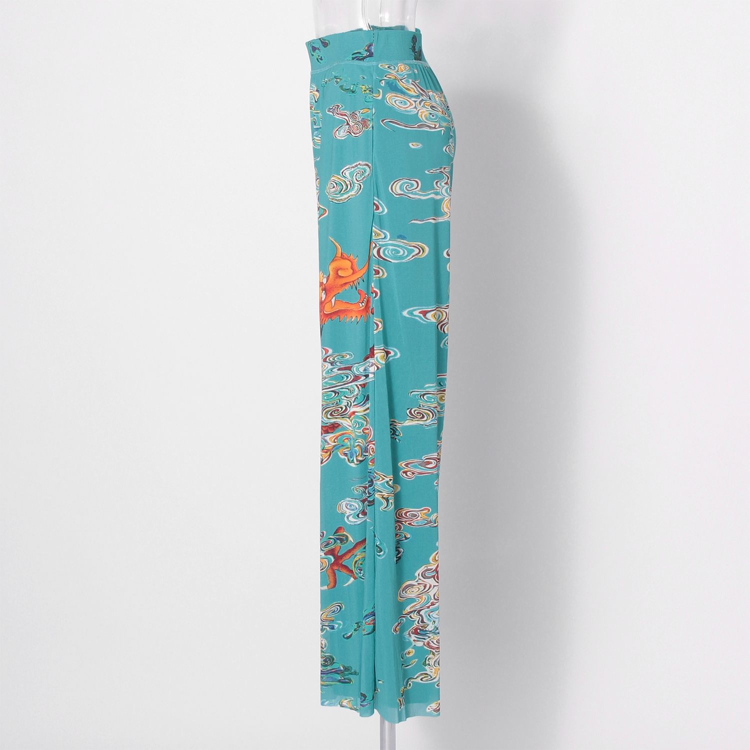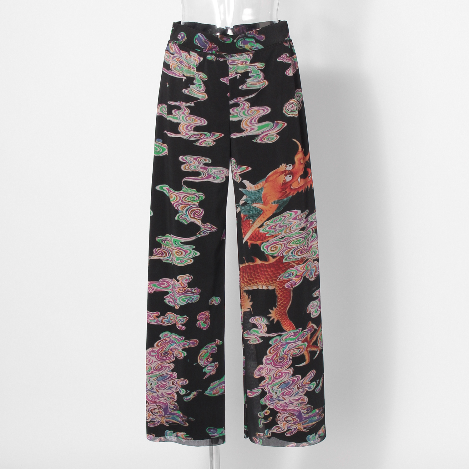 Ceramic dragon print on stretch net パンツ