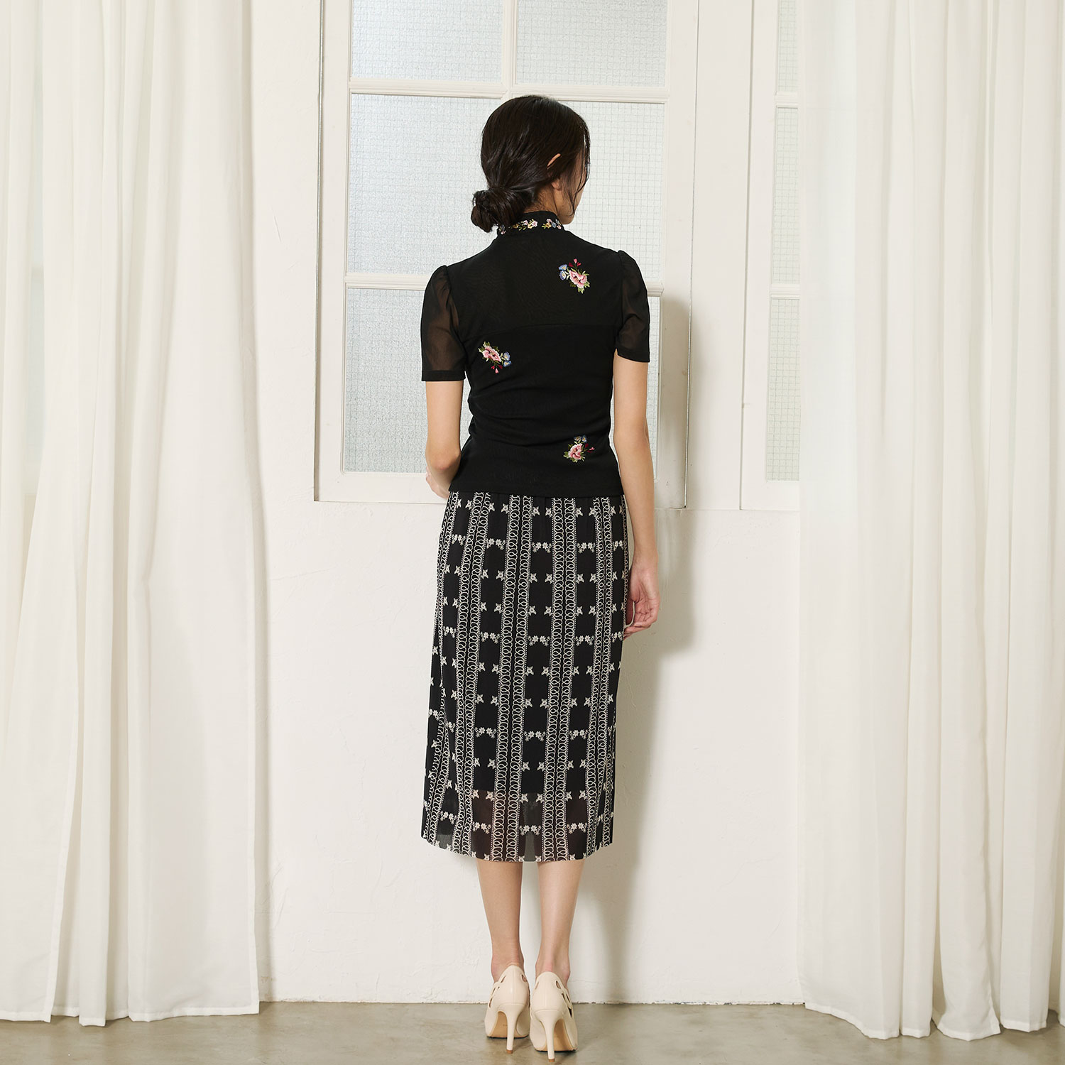 【COMING SOON】Multi flower embroidery on stretch net ブラウス