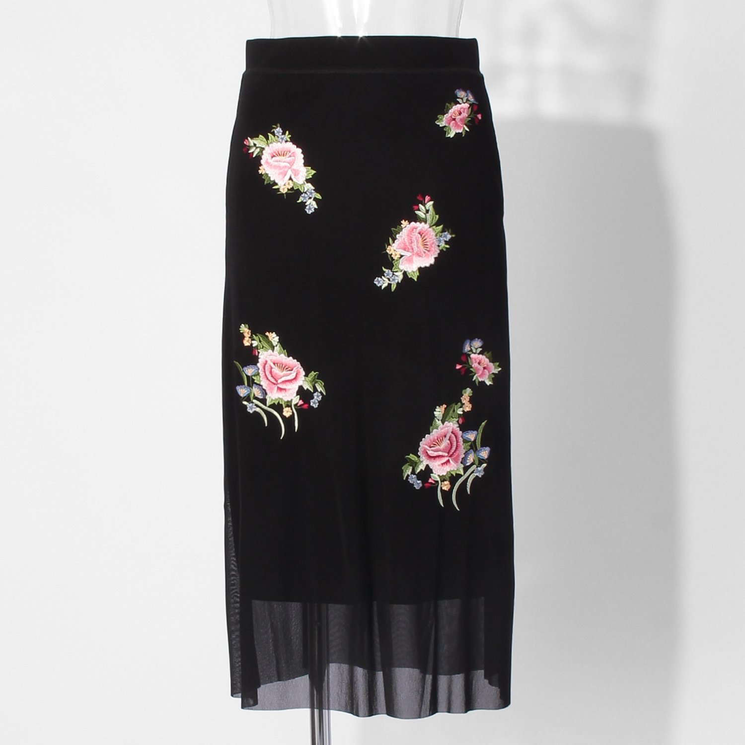 【COMING SOON】Multi flower embroidery on stretch net スカート