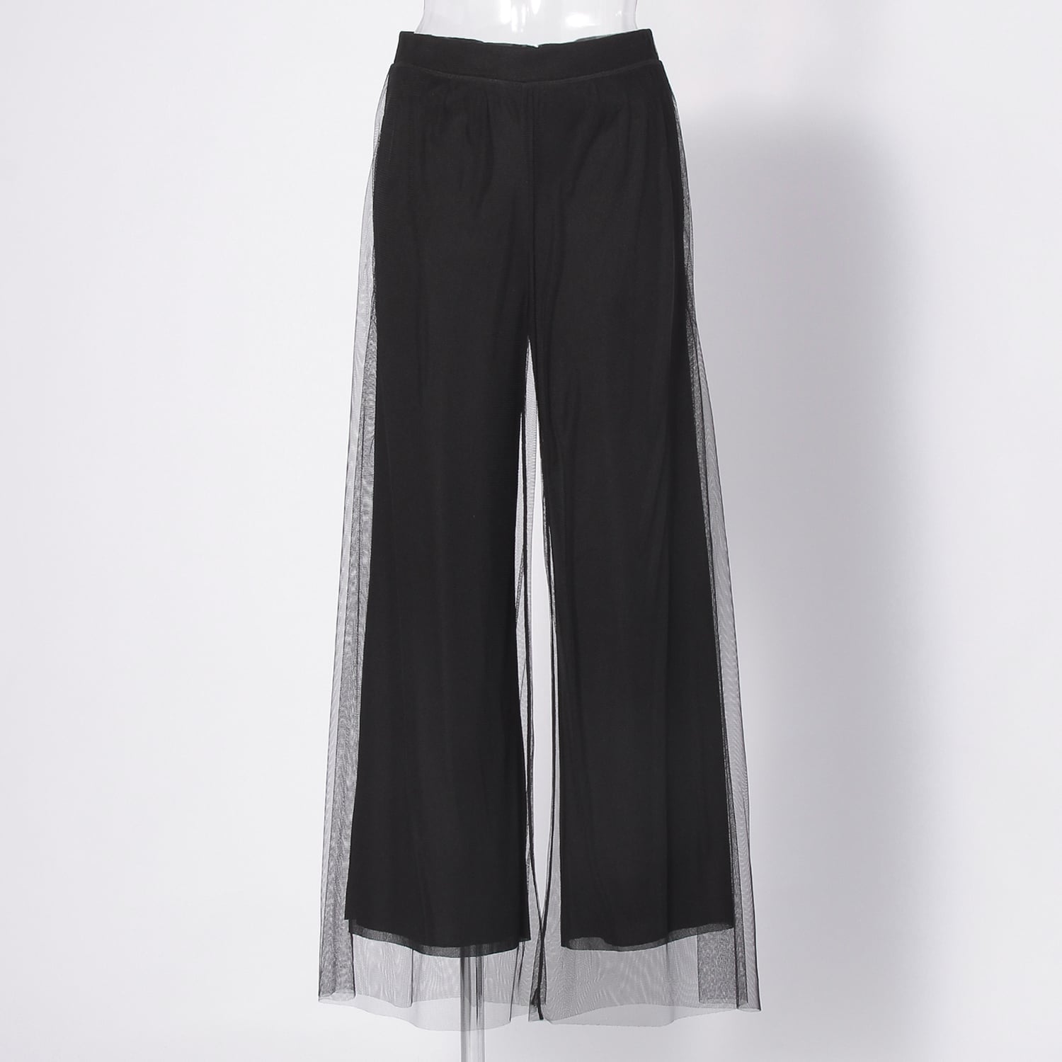透け感のあるネット素材を重ね、デザイン性を引き上げたパンツ。無地ながらもしっかりと着映えし、洗練された印象を与えます。シルエットは定番のストレートで取り入れやすく、着回しにも重宝。色彩豊かなトップスと合わせて、コントラストを強めても素敵です。