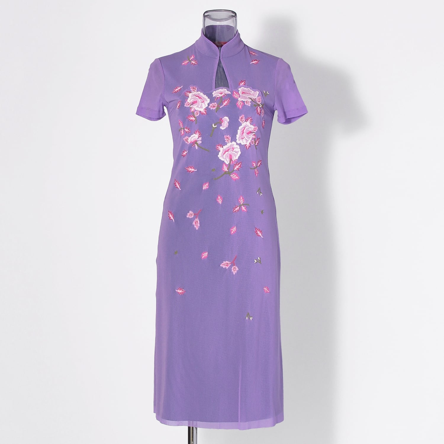 華やかな刺繍がふんだんに施されたワンピース。花びらが舞うような繊細なデザインが華やかさと上品さを引き立てます。裏地付きの仕様となっているため、1枚ですっきりご着用いただけるのも魅力のひとつです。