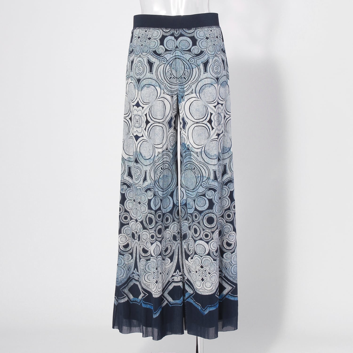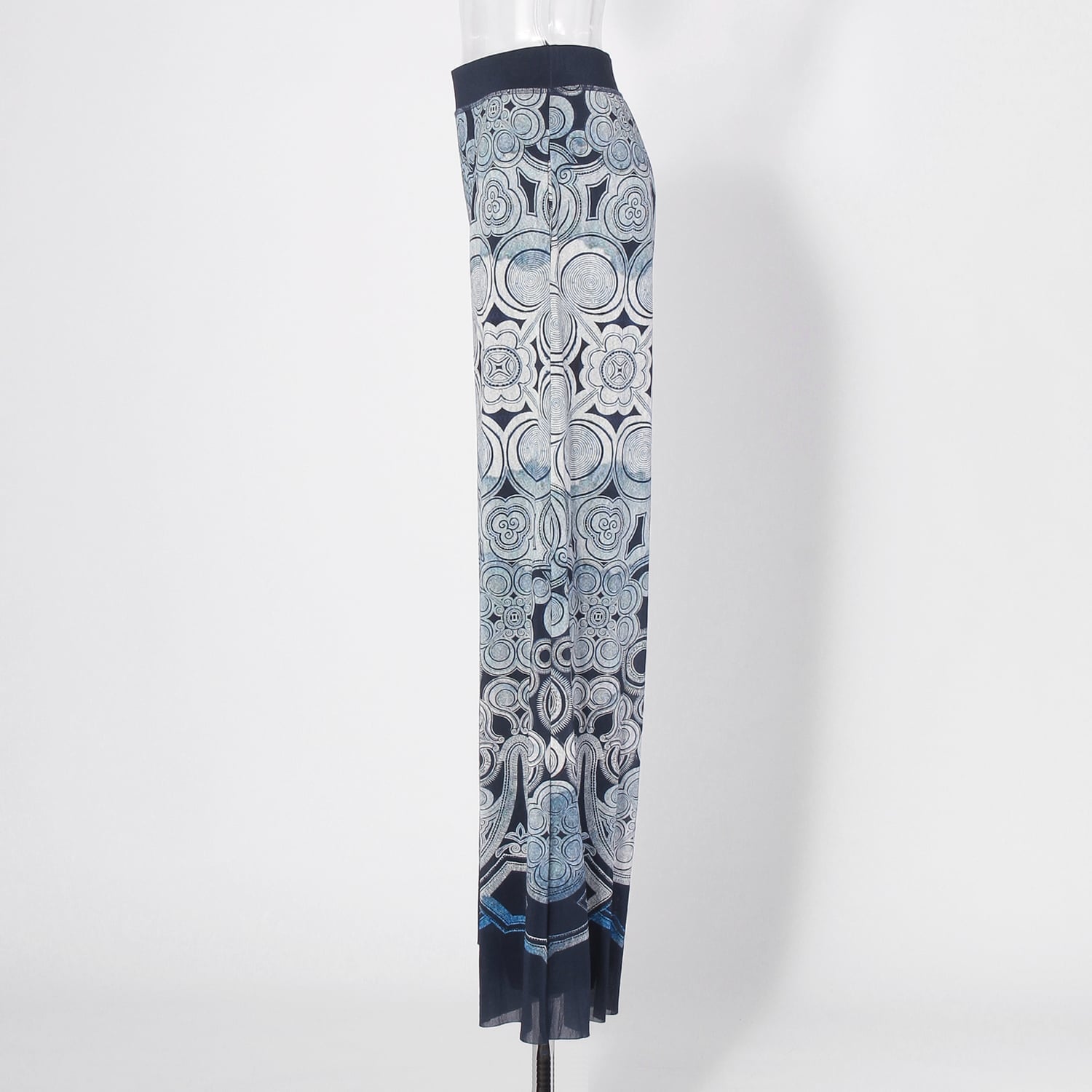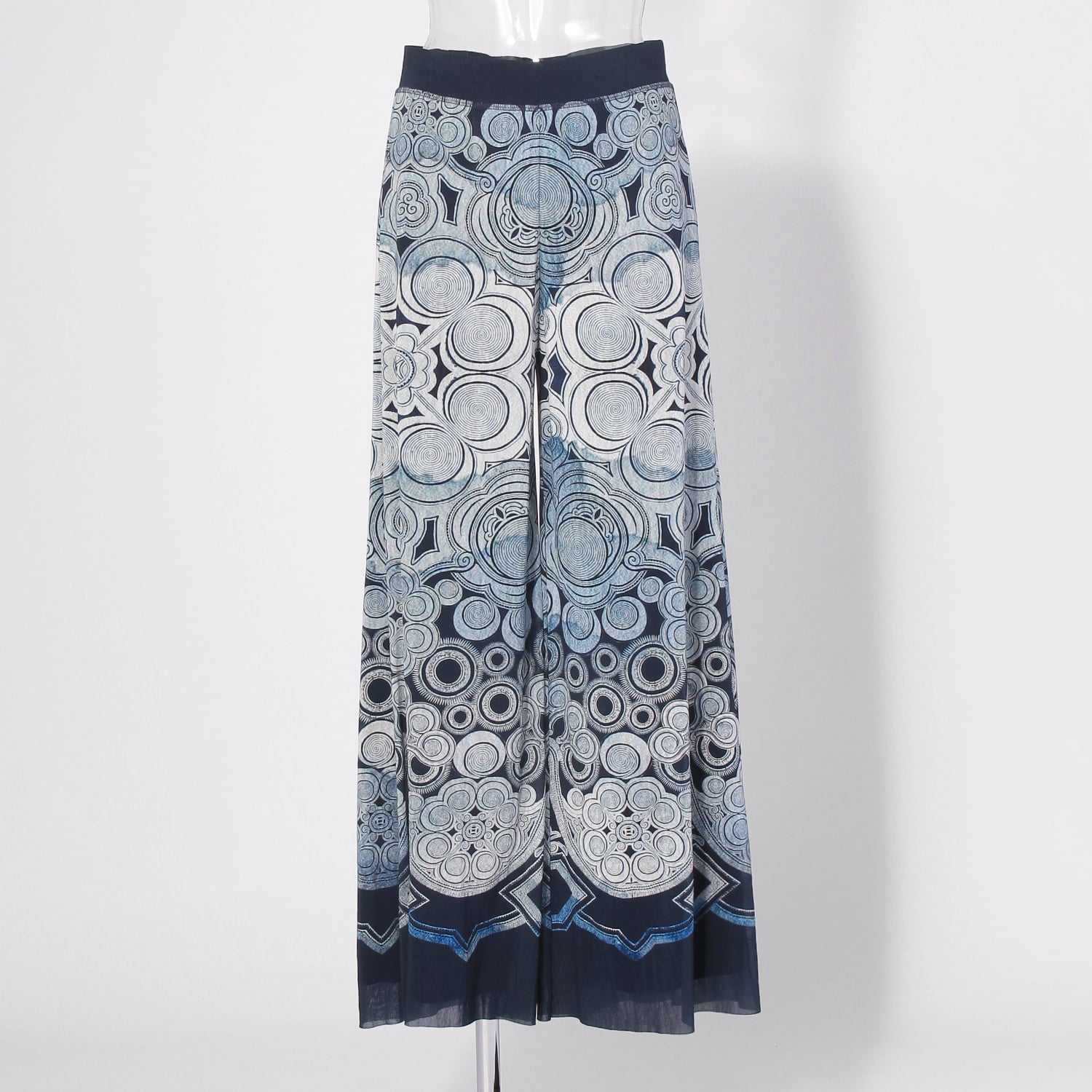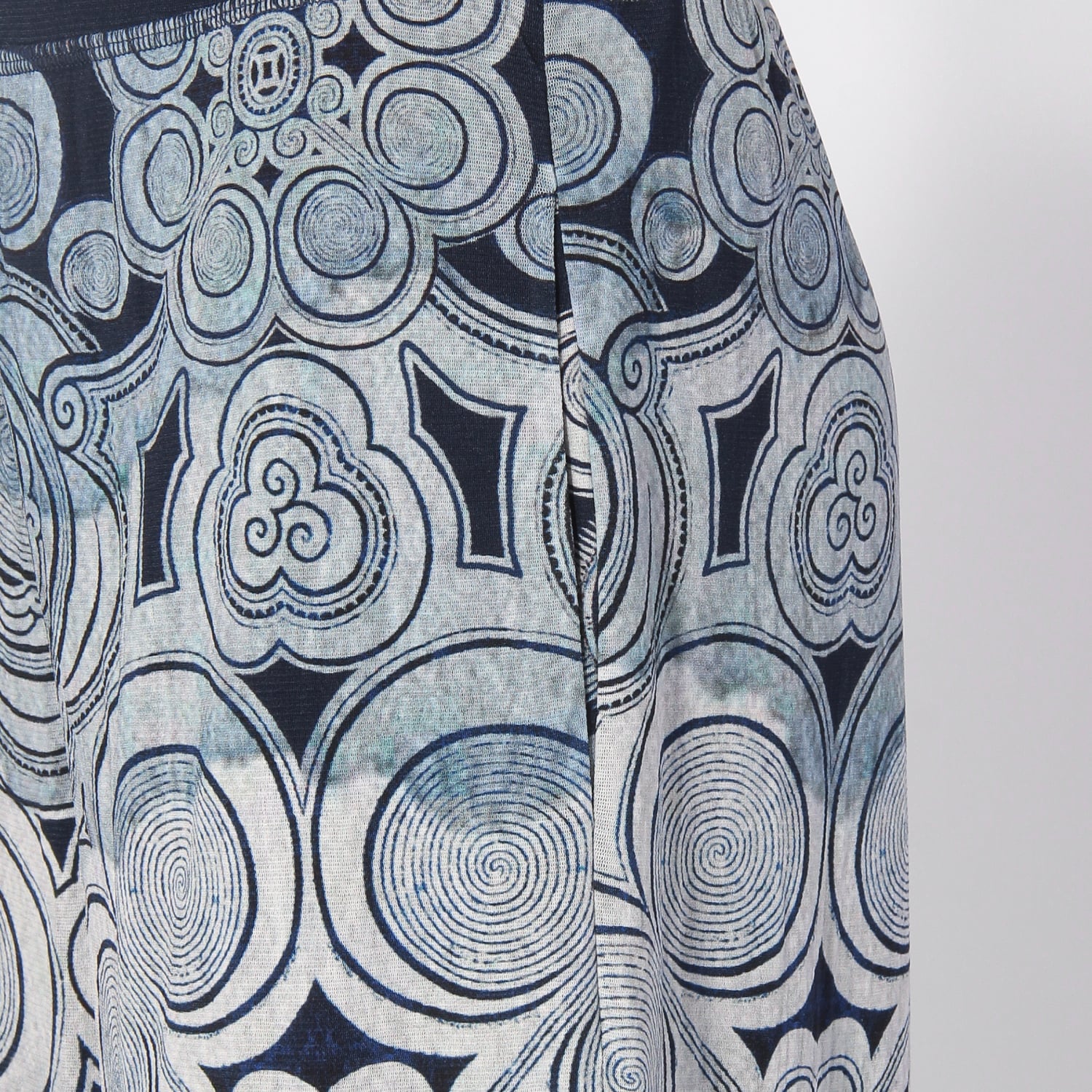 神秘的な渦巻き模様をプリントで表現した、アーティスティックなワイドパンツ。文様に民族の歴史や魔除けの意味を込める、ミャオ族の伝統的な衣装からインスピレーションを受けたデザインです。生地にはしなやかなナイロン素材を使用しており、はき心地も快適。同シリーズのアイテムと合わせた、セットアップスタイルもおすすめです。
