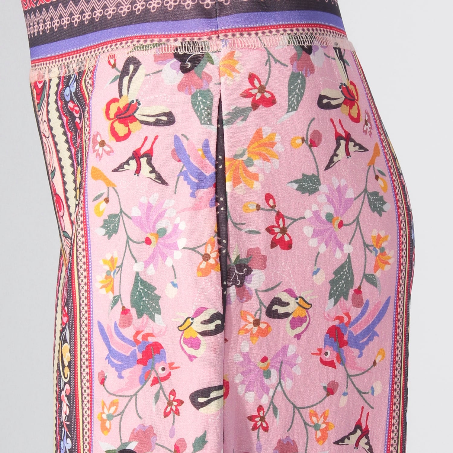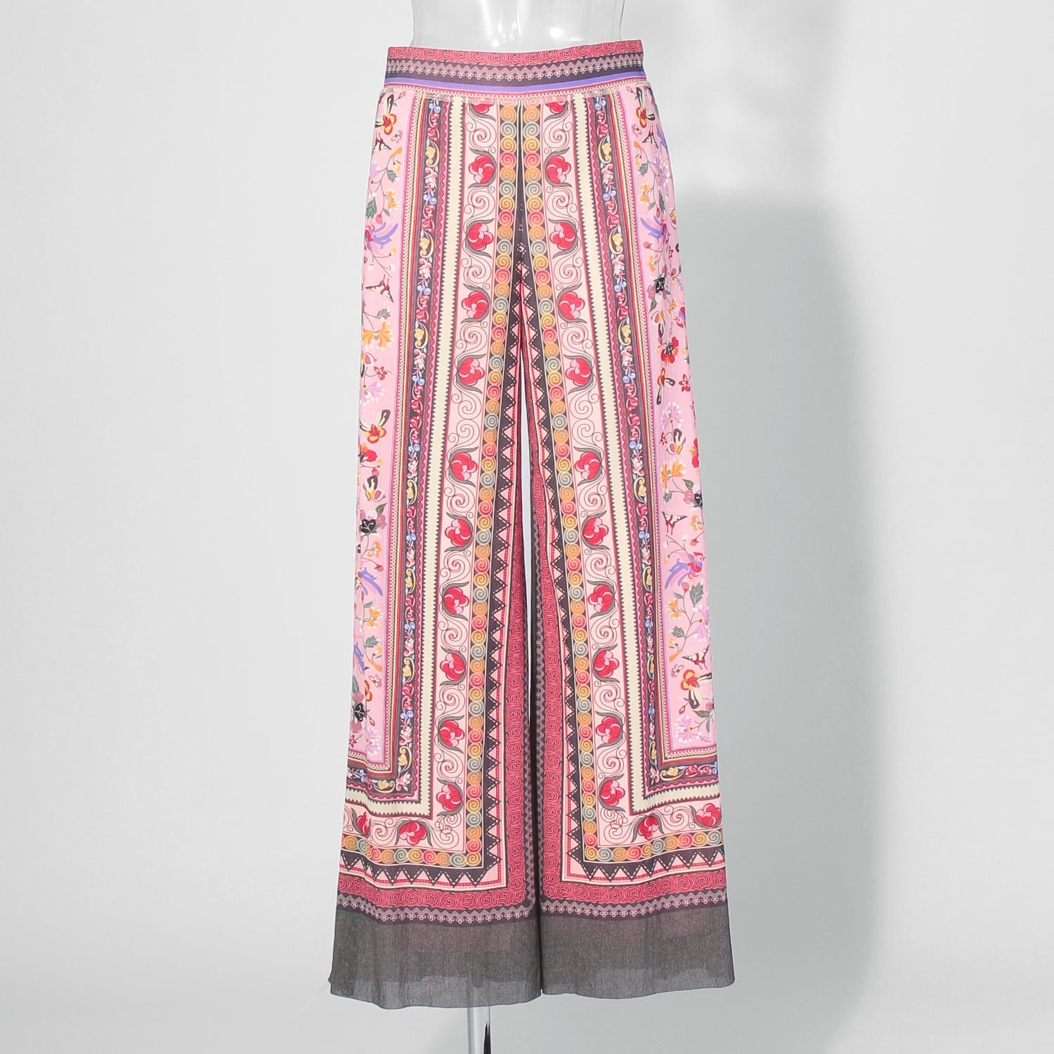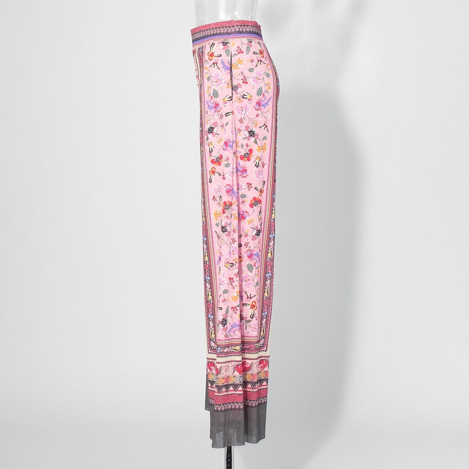 オールドラグからインスピレーションを受けた、伝統的なプリントが目を引くワイドパンツ。華やかなピンクにイエローやグレーの締め色を効かせており、洗練された雰囲気ではきこなせます。生地にはしなやかな肌触りのナイロン素材を使用しました。同シリーズのトップスと合わせた、セットアップスタイルもおすすめです。