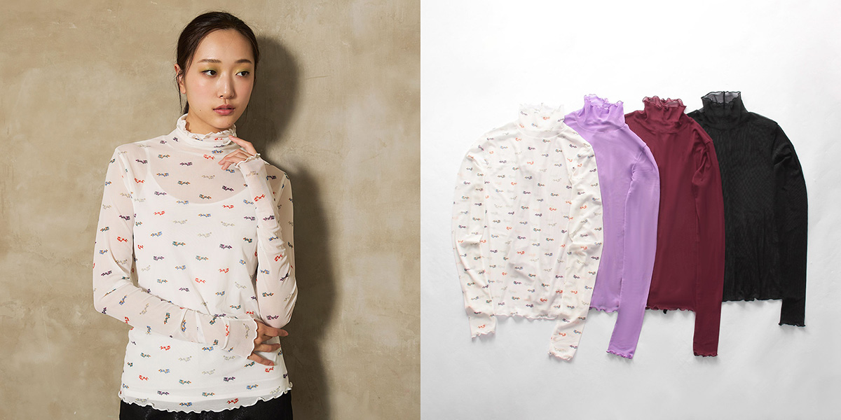 女性らしいハイネックのトップスは使いやすい無地の3色に加え、VIVIENNE TAMらしいミニドラゴンをあしらったプリントデザインをご用意しました。