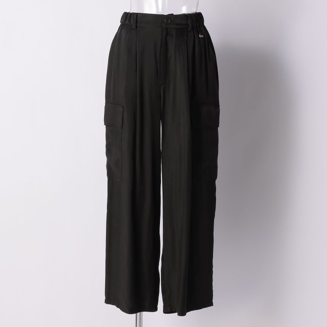 ドラゴンが全面に織り込まれたキャッチーなニットをカーゴパンツでクールなイメージにコーディネートしました。白黒のコントラストを和らげるカーキーのボトムスが全体を強すぎない印象に纏めます。